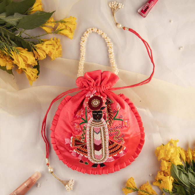 Designed with the heart, this beautiful Indian God Shrinath Ji Potli or batawa bag are eye catchy and made of premium material.
